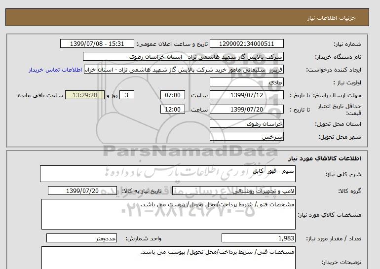 نام دستگاه خریدار:شرکت پالایش گاز شهید هاشمی نژاد - استان خراسان رضوی