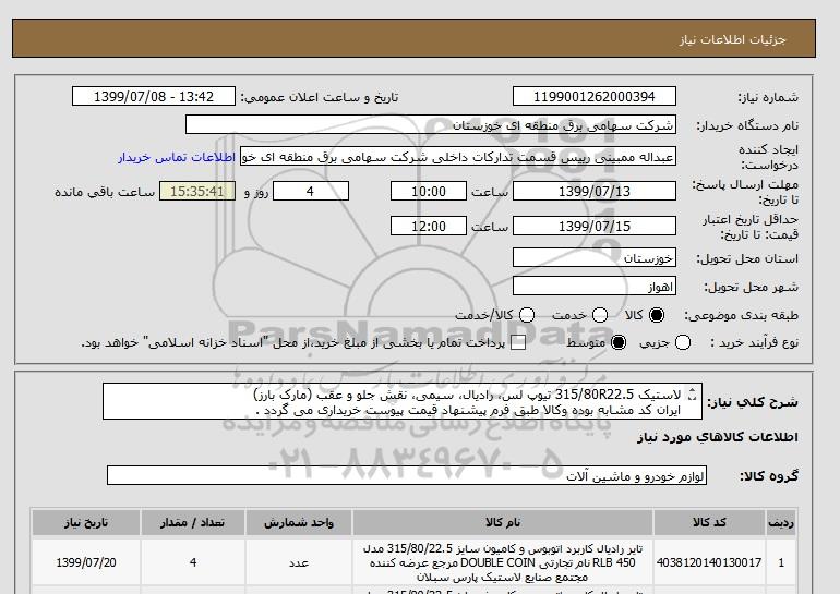 نام دستگاه خریدار:شرکت سهامی برق منطقه ای خوزستان