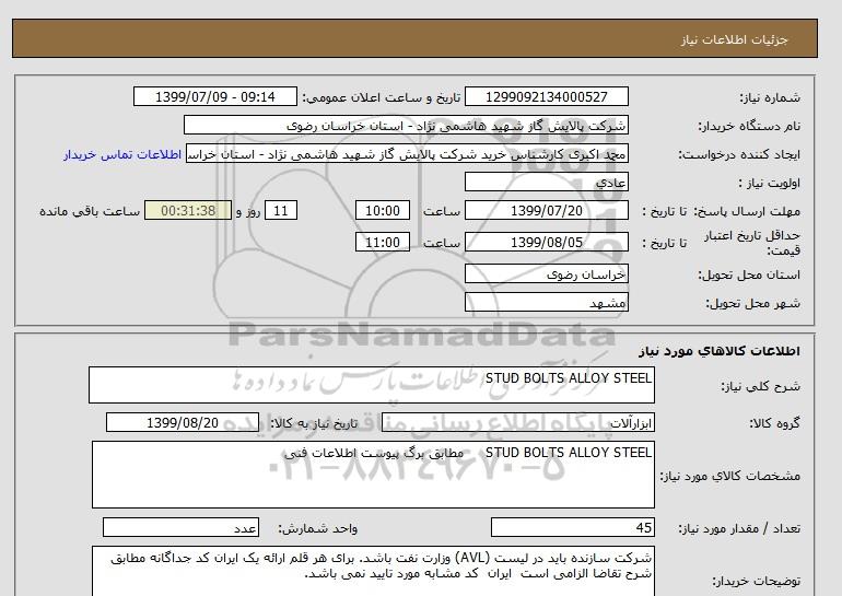 نام دستگاه خریدار:شرکت پالایش گاز شهید هاشمی نژاد - استان خراسان رضوی