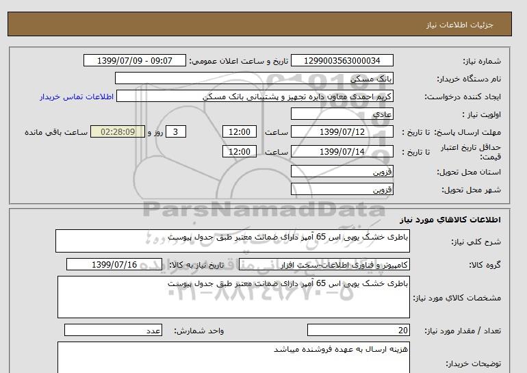 استعلام باطری خشک یوپی اس 65 آمپر دارای ضمانت معتبر طبق جدول پیوست, استعلام باطری خشک یوپی اس 65 آمپر دارای ضمانت معتبر طبق جدول پیوست