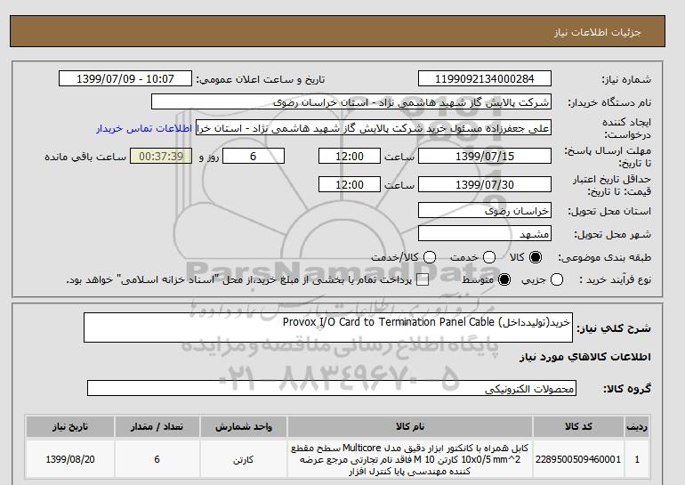 نام دستگاه خریدار:شرکت پالایش گاز شهید هاشمی نژاد - استان خراسان رضوی