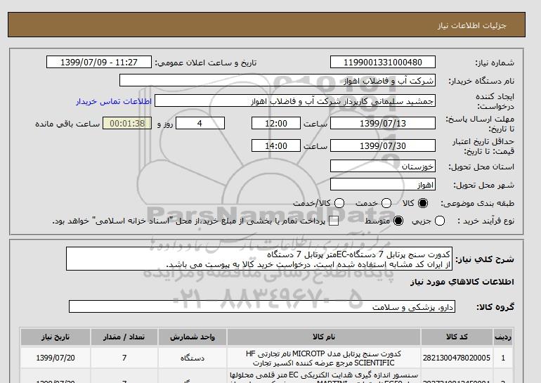 نام دستگاه خریدار:شرکت آب و فاضلاب اهواز