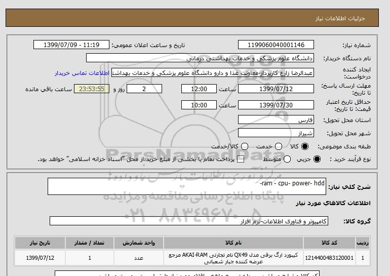 شرح کلی نیاز: ram - cpu- power- hdd-