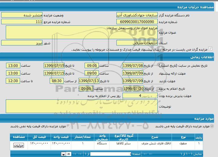 عنوان مزایده : مزایده اموال مازاد و مستعمل سازمان