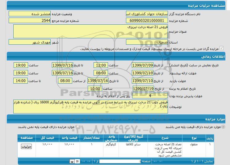 مزایده, مزایده فروش 21 اصله درخت تبریزی