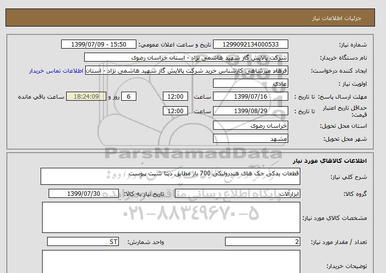 نام دستگاه خریدار:شرکت پالایش گاز شهید هاشمی نژاد - استان خراسان رضوی