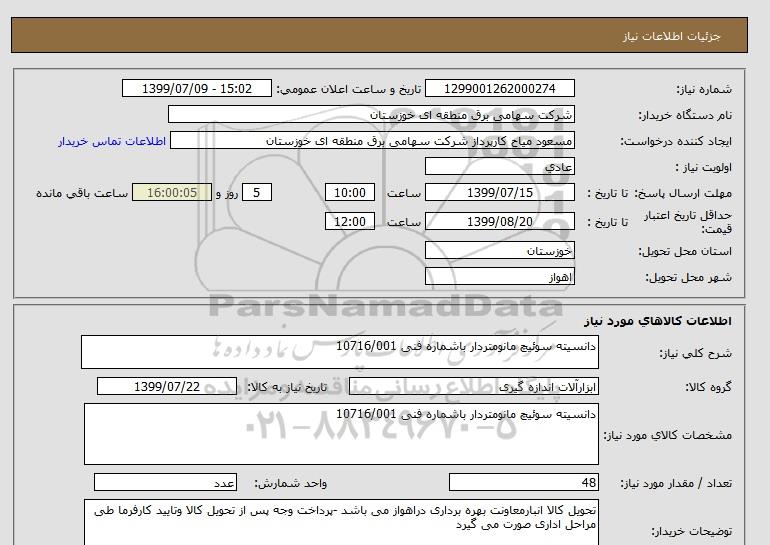 نام دستگاه خریدار:شرکت سهامی برق منطقه ای خوزستان