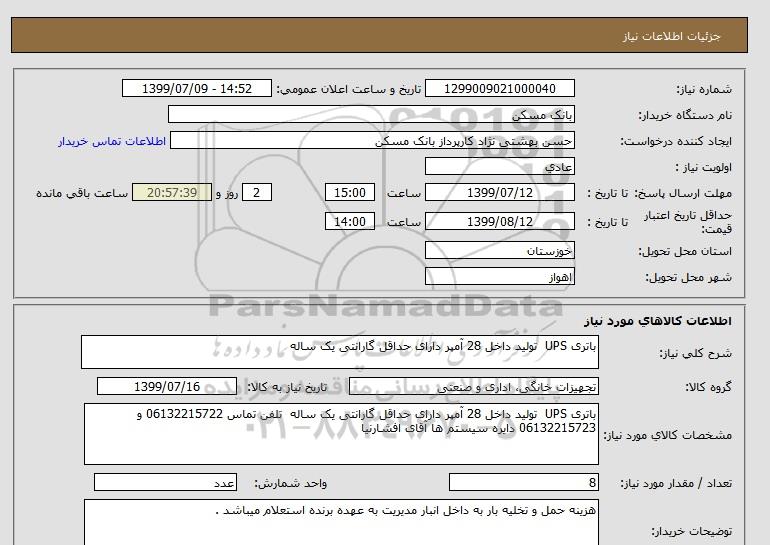 شرح کلی نیاز: باتری UPS تولید داخل 28 آمپر دارای حداقل گارانتی یک ساله