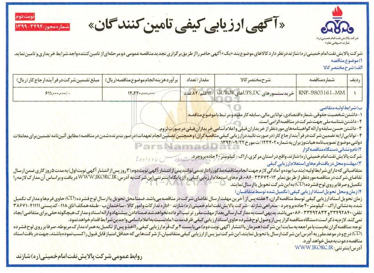 تجدید مناقصه خرید سنسورهای DC، UPS های GUTOR - نوبت دوم از کلیه افراد متخصص و شرکتها واجد شرایط دعوت به عمل میآید در مناقصه با کد خبرگزاری پارس نماد: 2752451 شرکت نمایند.