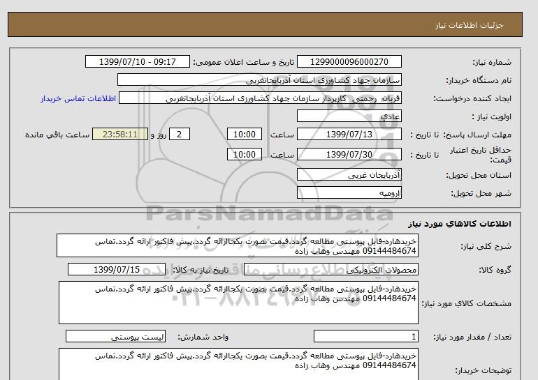نام دستگاه خریدار:سازمان جهاد کشاورزی استان آذربایجانغربی