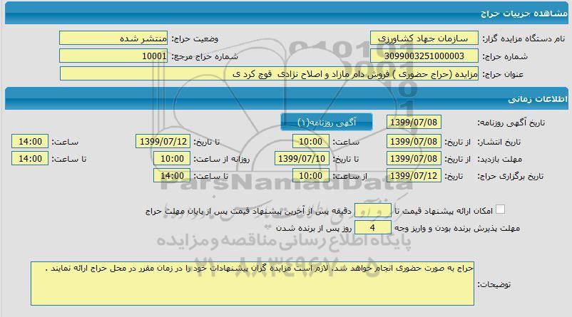 نام دستگاه مزایده گزار: سازمان جهاد کشاورزی