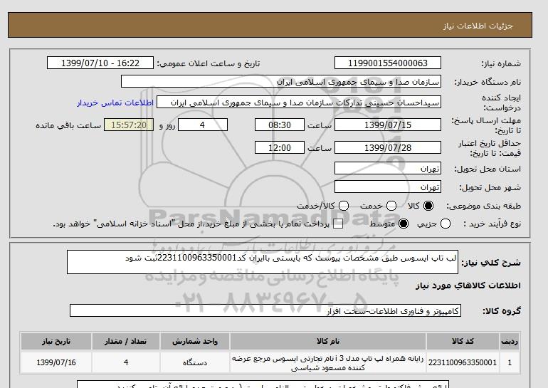 نام دستگاه خریدار:سازمان صدا و سیمای جمهوری اسلامی ایران