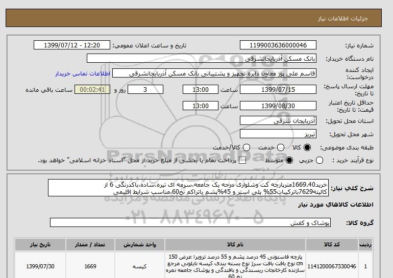 نام دستگاه خریدار:بانک مسکن آذربایجانشرقی