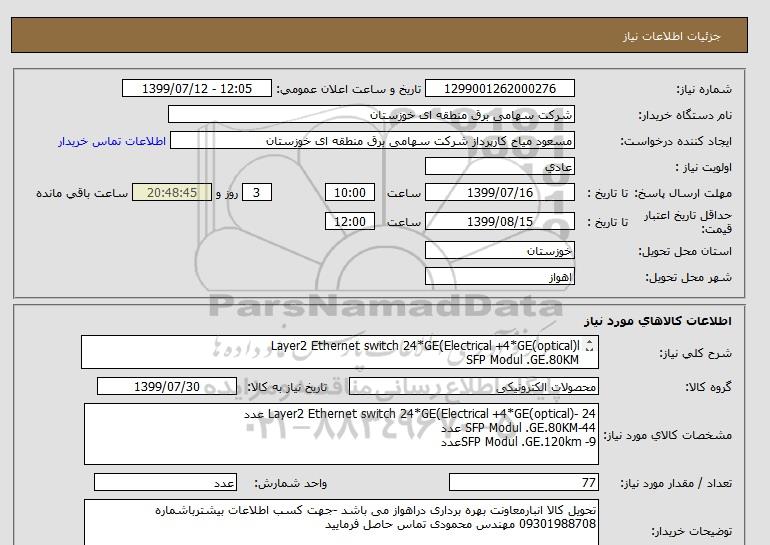 نام دستگاه خریدار:شرکت سهامی برق منطقه ای خوزستان