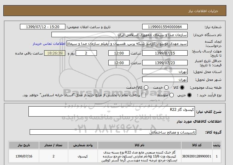 نام دستگاه خریدار:سازمان صدا و سیمای جمهوری اسلامی ایران