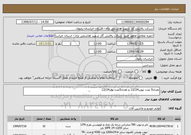 نام دستگاه خریدار:شرکت پالایش گاز شهید هاشمی نژاد - استان خراسان رضوی