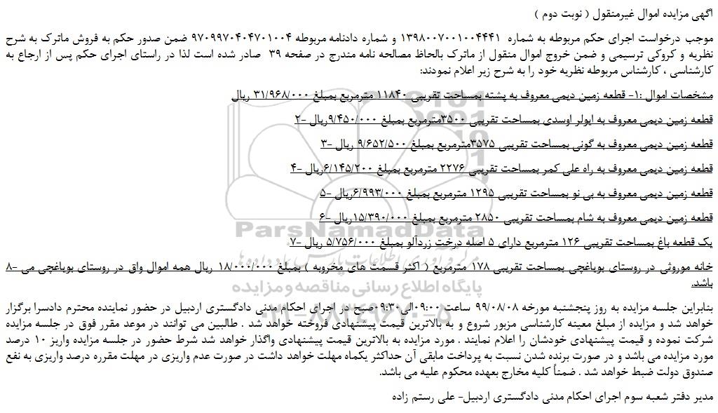 اگهی مزایده اموال غیرمنقول ( نوبت دوم )
