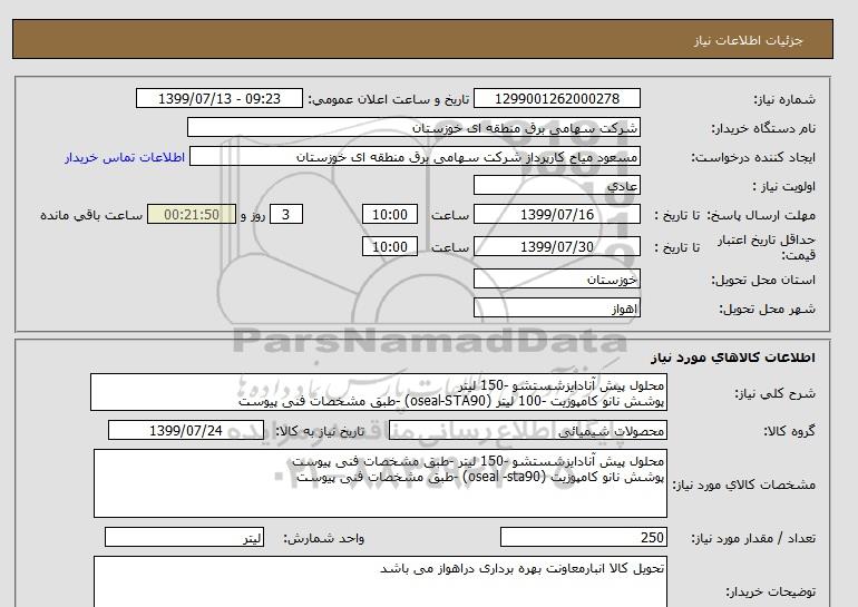 شرح کلی نیاز: محلول پیش آنادایزشستشو -150 لیتر