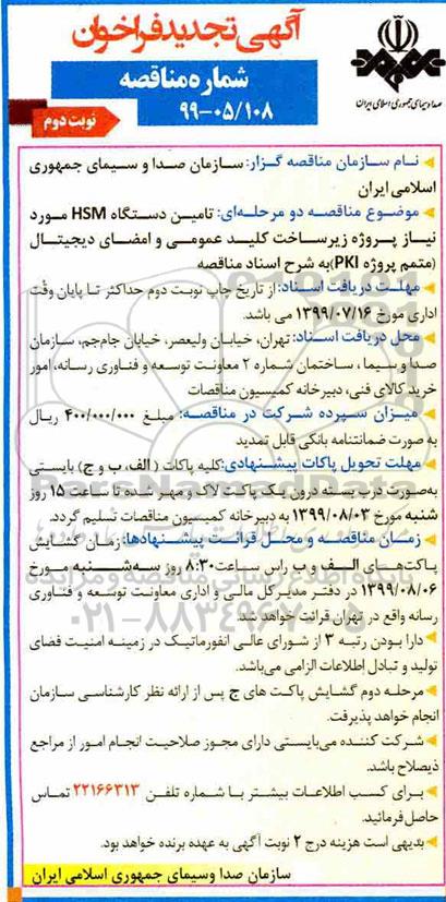 - نام سازمان مناقصه گزار: سازمان صدا و سیمای جمهوری اسلامی ایران