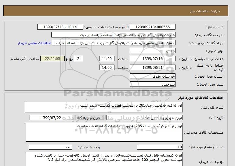 نام دستگاه خریدار:شرکت پالایش گاز شهید هاشمی نژاد - استان خراسان رضوی