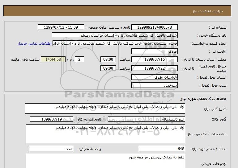نام دستگاه خریدار:شرکت پالایش گاز شهید هاشمی نژاد - استان خراسان رضوی