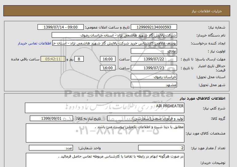 نام دستگاه خریدار:شرکت پالایش گاز شهید هاشمی نژاد - استان خراسان رضوی