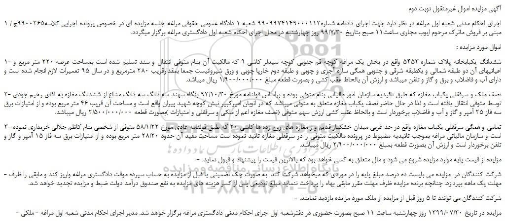 آگهی مزایده اموال غیرمنقول نوبت دوم