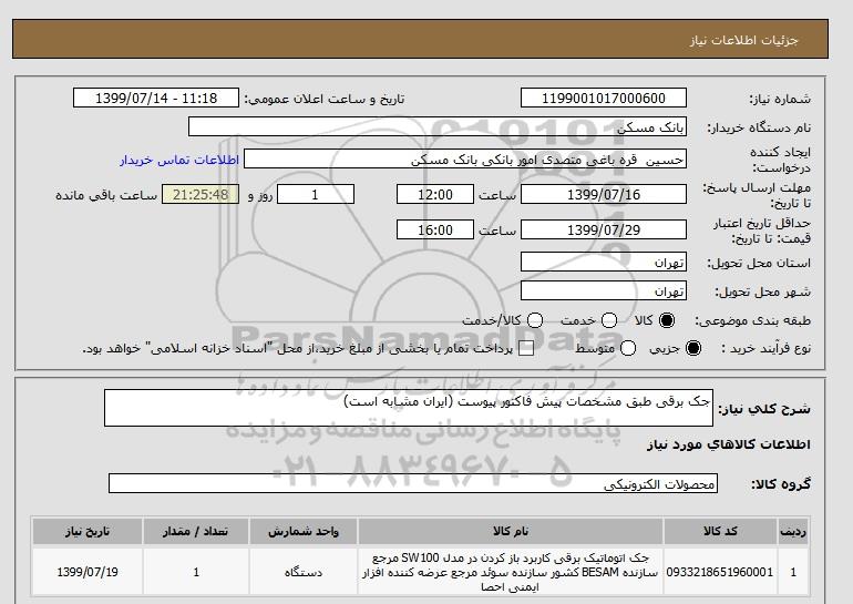 تاریخ پایان اعتبار قیمت: 1399/07/29