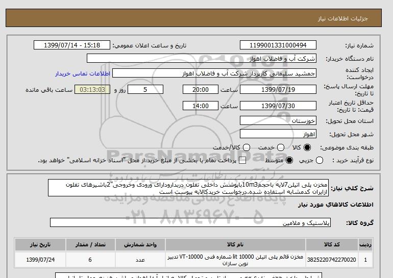 نام دستگاه خریدار:شرکت آب و فاضلاب اهواز