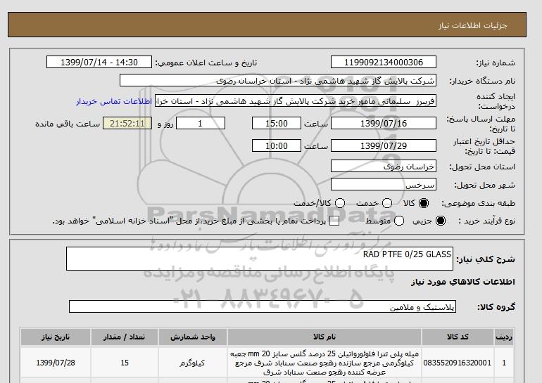 شرح کلی نیاز: RAD PTFE 0/25 GLASS
