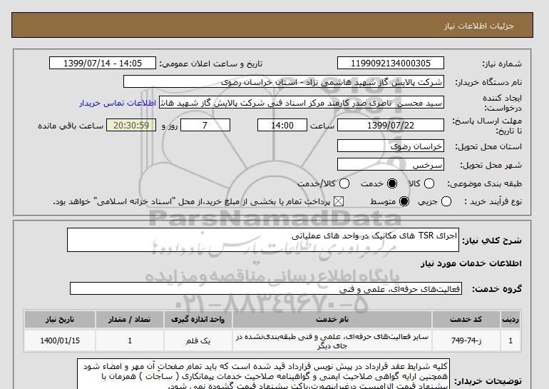 شرح کلی نیاز: اجرای TSR های مکانیک در واحد های عملیاتی