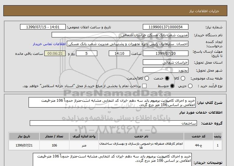 نام دستگاه خریدار:مدیریت شعب بانک مسکن خراسان شمالی