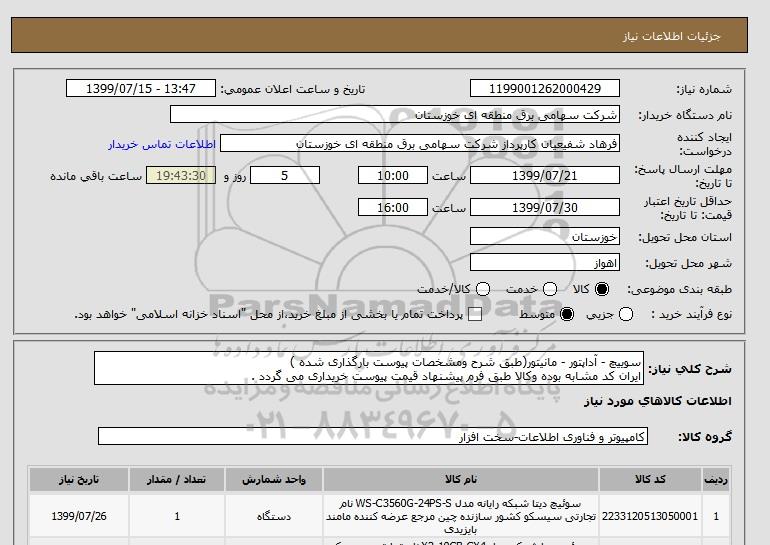 شرح کلی نیاز: سوییچ - آداپتور - مانیتور(طبق شرح ومشخصات پیوست بارگذاری شده )