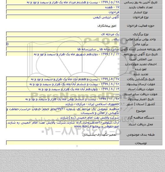مناقصه, مناقصه عمومی یک مرحله ای شماره ۹۹/۲۱انجام حجم خدمات حراست٫حفاظت و نگهبانی از اماکن و تاسیسات, مناقصه عمومی یک مرحله ای شماره ۹۹/۲۱انجام حجم خدمات حراست٫حفاظت و نگهبانی از اماکن و تاسیسات