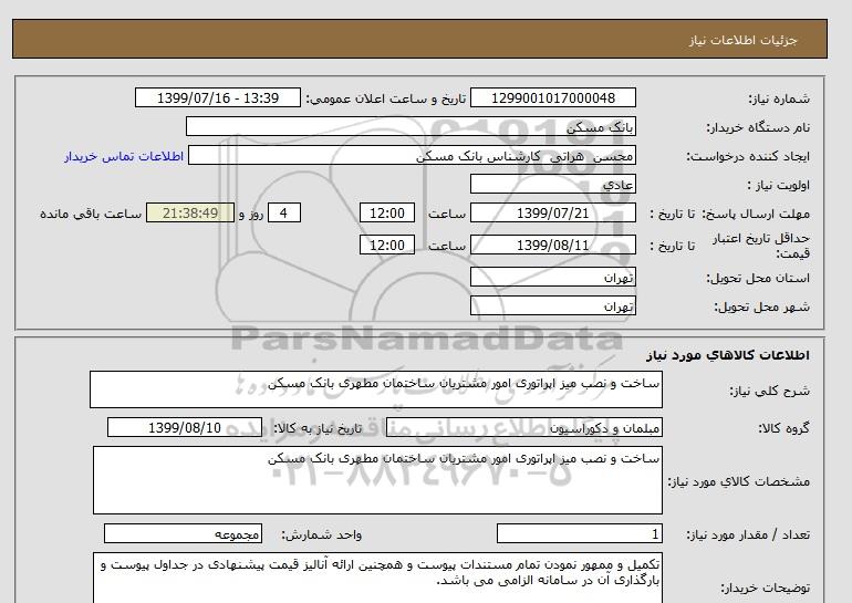استعلام ساخت و نصب میز اپراتوری امور مشتریان ساختمان مطهری بانک مسکن , استعلام ساخت و نصب میز اپراتوری امور مشتریان ساختمان مطهری بانک مسکن
