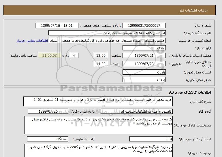 نام دستگاه خریدار:اداره کل کتابخانه های عمومی استان زنجان