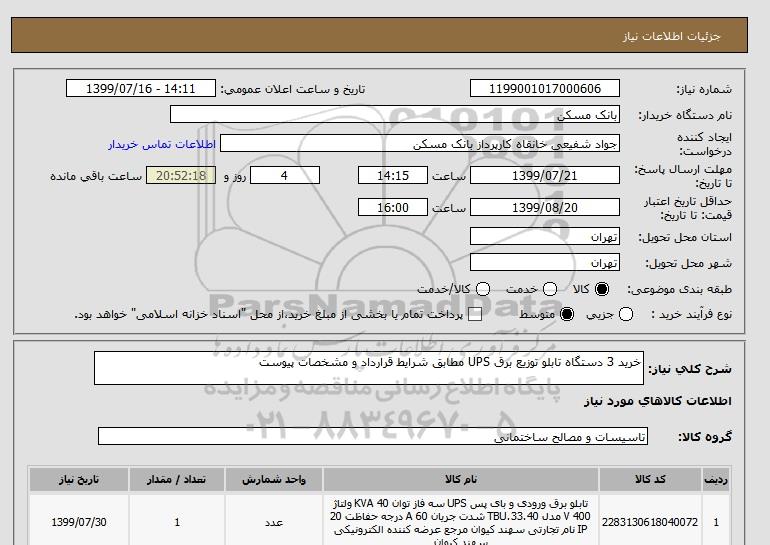 شرح کلی نیاز: خرید 3 دستگاه تابلو توزیع برق UPS مطابق شرایط قرارداد و مشخصات پیوست