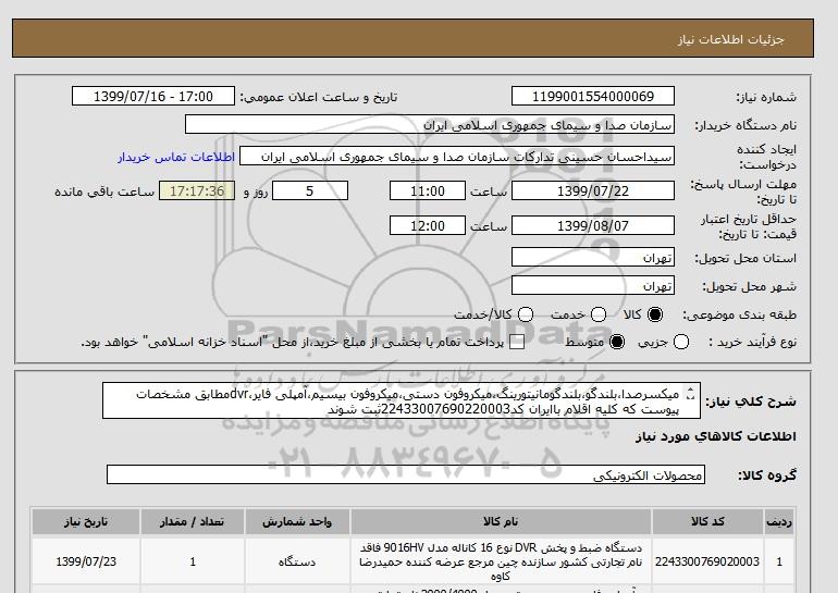 نام دستگاه خریدار:سازمان صدا و سیمای جمهوری اسلامی ایران