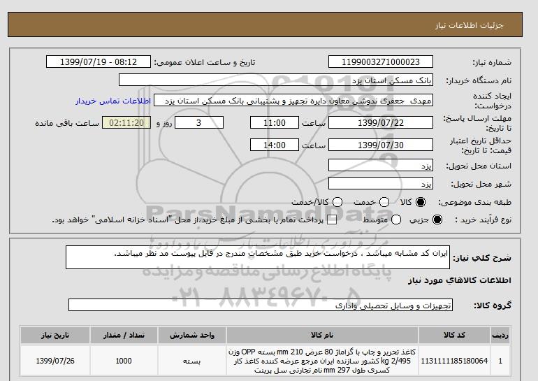 نام دستگاه خریدار:بانک مسکن استان یزد