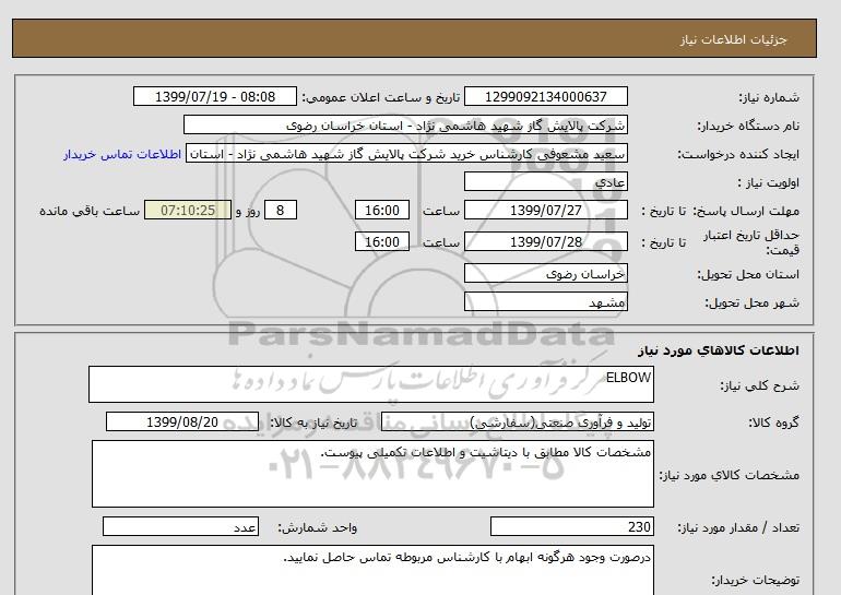 نام دستگاه خریدار:شرکت پالایش گاز شهید هاشمی نژاد - استان خراسان رضوی