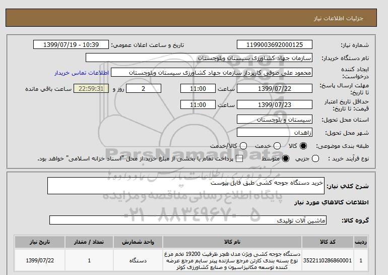 نام دستگاه خریدار:سازمان جهاد کشاورزی سیستان وبلوچستان