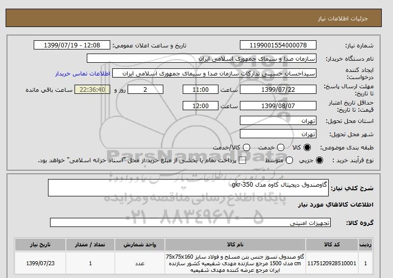 توضیحات خریدارپیشنهاد فقط درخصوص گاوصندوق دیجیتال کاوه مدل 350-gkr باایران کد1175120928510001ثبت شود.تحویل درمحل سازمان صداوسیما می باشد.ارائه گارانتی اصل باتاییدکارشناس سازمان الزامی است.پیش فاکتورارائه گردد.