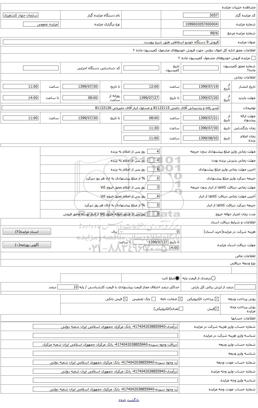 | شماره مزایده | 1199003057000004 | نوع برگزاری مزایده | مزایده عمومی | |