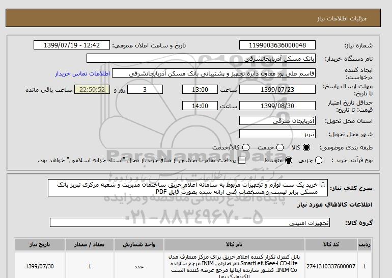 نام دستگاه خریدار:بانک مسکن آذربایجانشرقی