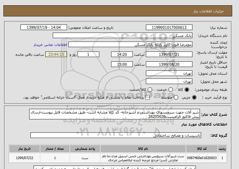 استعلام شیر آلات جهت سرویسهای بهداشتی و آشپزخانه- کد کالا مشابه است- طبق مشخصات فایل پیوست-ارسال پیش فاکتور الزامیست26205036, استعلام شیر آلات جهت سرویسهای بهداشتی و آشپزخانه- کد کالا مشابه است- طبق مشخصات فایل پیوست-ارسال پیش فاکتور الزامیست26205036