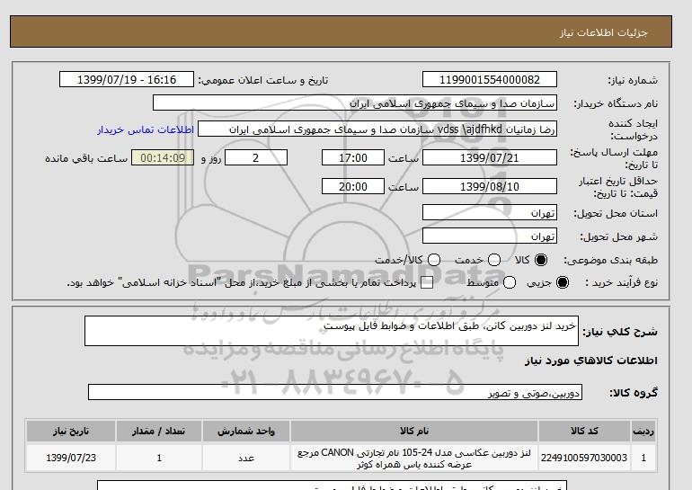 نام دستگاه خریدار:سازمان صدا و سیمای جمهوری اسلامی ایران