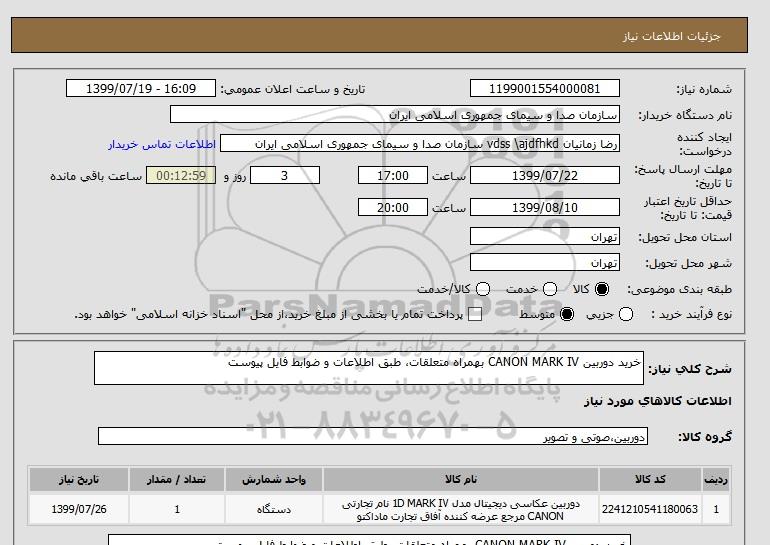 شرح کلی نیاز: خرید دوربین CANON MARK IV بهمراه متعلقات، طبق اطلاعات و ضوابط فایل پیوست