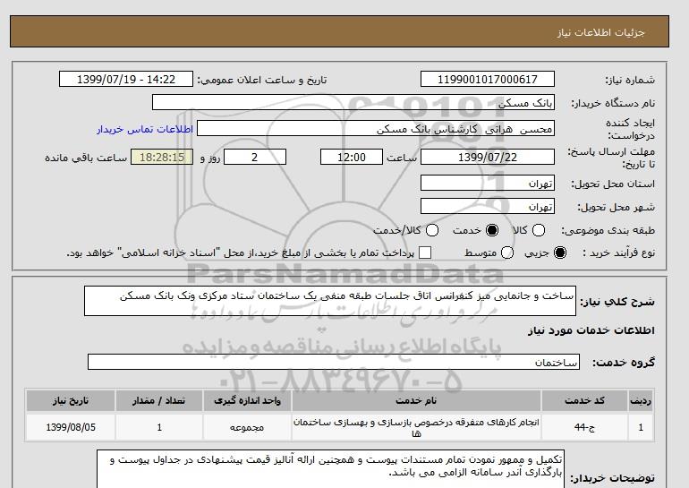 شرح کلی نیاز: ساخت و جانمایی میز کنفرانس اتاق جلسات طبقه منفی یک ساختمان ستاد مرکزی ونک بانک مسکن