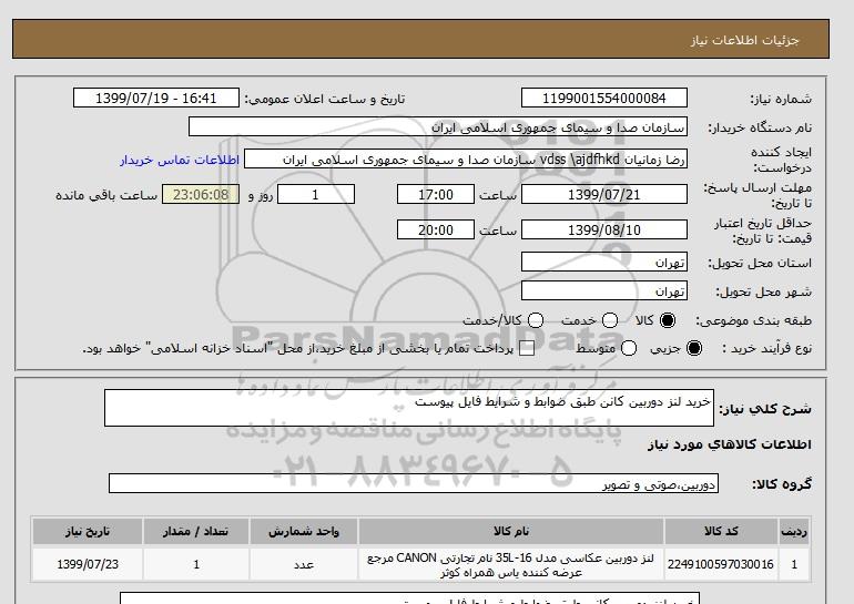 شرح کلی نیاز: خرید لنز دوربین کانن طبق ضوابط و شرایط فایل پیوست