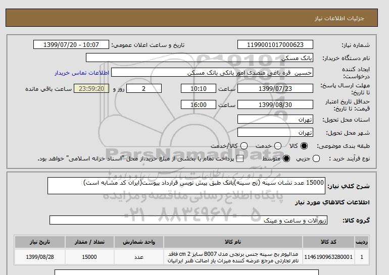 استعلام 15000 عدد نشان سینه (بج سینه)بانک طبق پیش نویس قرارداد پیوست(ایران کد مشابه است), استعلام 15000 عدد نشان سینه (بج سینه)بانک طبق پیش نویس قرارداد پیوست(ایران کد مشابه است)